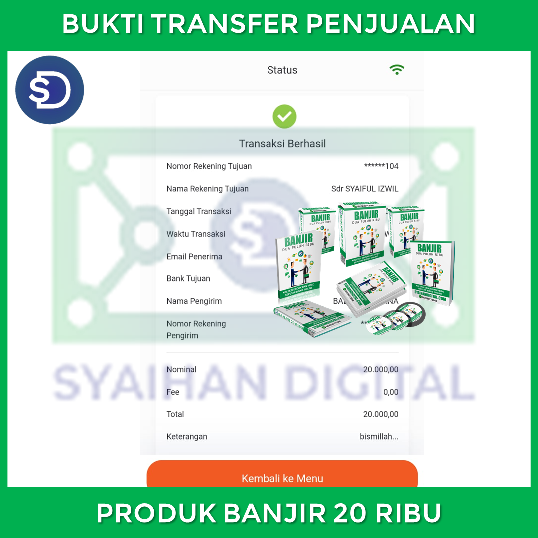 Praktekkan ilmu di dalamnya. Insyaa Allah kamu bisa dapat uang. Jual ulang produk ini, dapatkan profit 100% berkali-kali